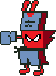 Bloxer ressemble à un boxer sous forme cubique. Son corps est séparé en trois parties qu'il peut arranger à sa guise et il est de couleurs rouge et bleue avec des yeux blancs.