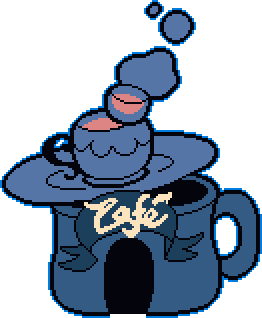 The Cafe is a building where the player can interact with their party's Recruits. Four different recruits can be placed at the three tables inside, and interacting with each of them can allow the player to learn more about their personalities. Depending on the composition of their placement, the recruits' responses to Kris interacting with them varies, although they mainly share their drink or snack preferences by attempting to voice their order if they lack any dynamics between them.