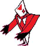 Swatchlings are broad, black-feathered, bird-type Darkner with a white mask which resembles that of a plague doctor. The Swatchlings appear wearing a brightly-colored suit and tie with a white shirt underneath along with white pants and black dress shoes. As their name suggests, their suits, ties, and eyes may differ in terms of colors, from red, orange, yellow, green, and blue.