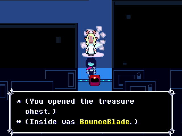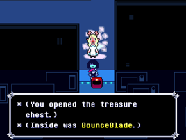 弹跳刀刃(Bounce Blade),又被译作弹弹剑,是可以在赛博都市的一个箱子中找到的武器,位于Sweet Cap'n Cakes在赛博都市的音乐小摊东侧房间的南面,要获得它需要击败守护箱子的Virovirokun。它只能够由Kris装备,并且提供+2AT,+1DF。返回家乡后,该物品变成了标准的橡皮擦。