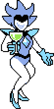 Queen,全名是Q5U4EX7YY2E9N,是Deltarune第二章的主要和普通路线的最終敵人。她也是在圖書館電腦室中的賽博世界統治者。